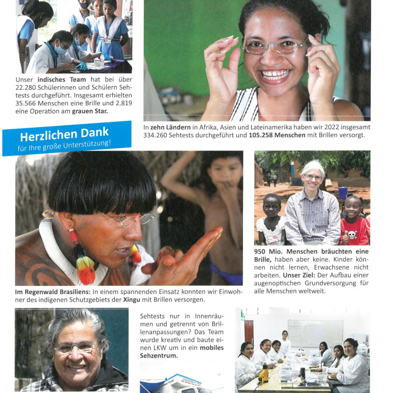 Weltweit fest verwurzelt in zehn Projektländern auf drei Kontinenten trägt der Wunsch nach besserem Sehen für alle Menschen reichlich Früchte. Nach über einer Million Sehtests erhalten mehr als 400.000 Menschen eine EinDollarBrille.